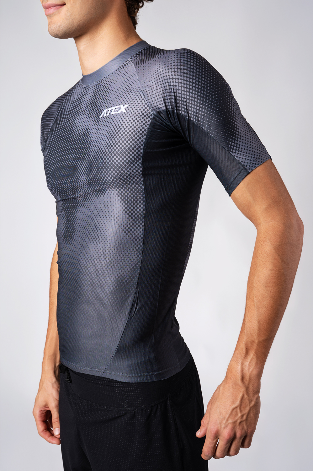 Vyroben je z materiálu SALI – velmi pružného, lehkého a prodyšného materiálu s jemnou drobně perforovanou strukturou, která podporuje rychlý odvod potu od těla a následné schnutí. Na omak je hladký, měkký a jemný, ideální pro přímý kontakt s pokožkou.