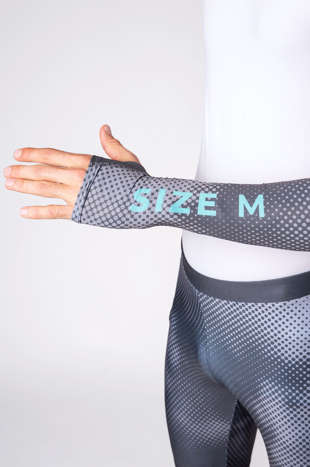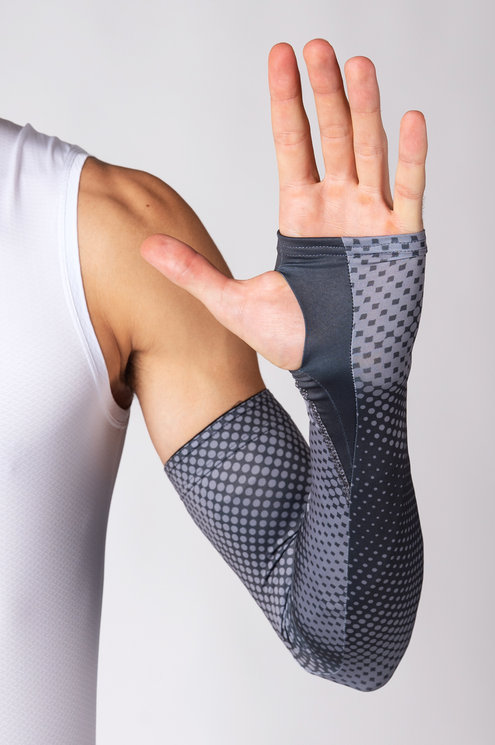 Horní část je zakončena protiskluzovou silikonovou gumou, která udržuje návleky na místě i při intenzivním pohybu. Spodní část je vybavena otvorem na palec, který umožňuje efektivní krytí zápěstí a části dlaně a zvyšuje funkčnost při sportovní zátěži.