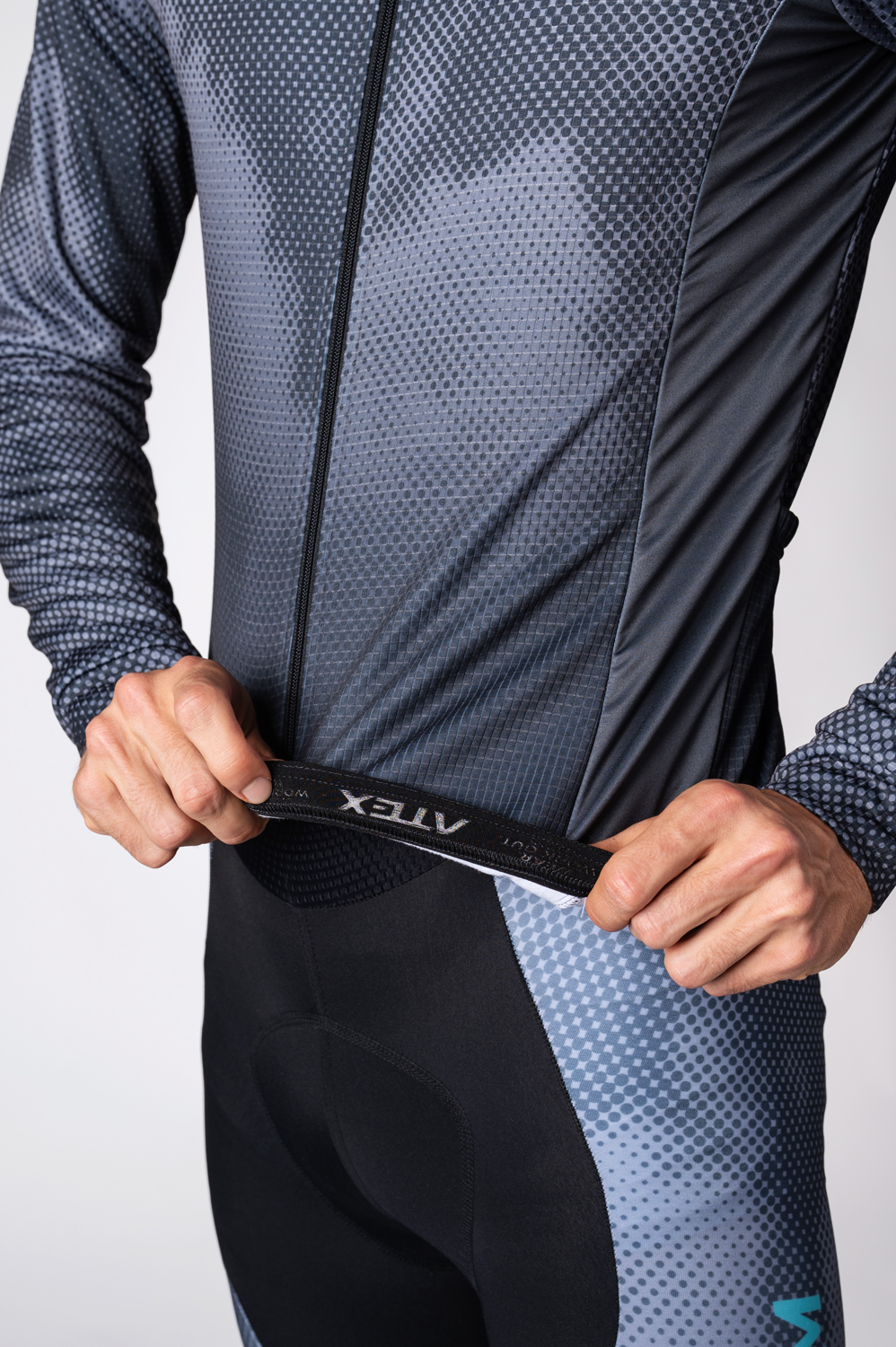Cyklo dres PROFI s dlouhými rukávy má precizně zpracovaný polopřiléhavý střih, který zajišťuje pohodlí během jízdy i volného pohybu. Na předním díle je celopropínací zip se stop jezdcem, který umožňuje plynulé a bezpečné zapínání. Vyšší stoják u krku napomáhá lepšímu přizpůsobení a pohodlnému usazení kolem krční části. Dlouhé rukávy jsou zakončeny manžetami, které příjemně přiléhají k zápěstím, zatímco spodní lem je opatřen silikonovou protiskluzovou gumou, která udržuje dres na místě i při intenzivním pohybu. Zadní díl je vybaven trojdílnou kapsou s reflexními prvky, které zajišťují prostor pro nezbytné věci a zároveň zvyšují bezpečnost při snížené viditelnosti.