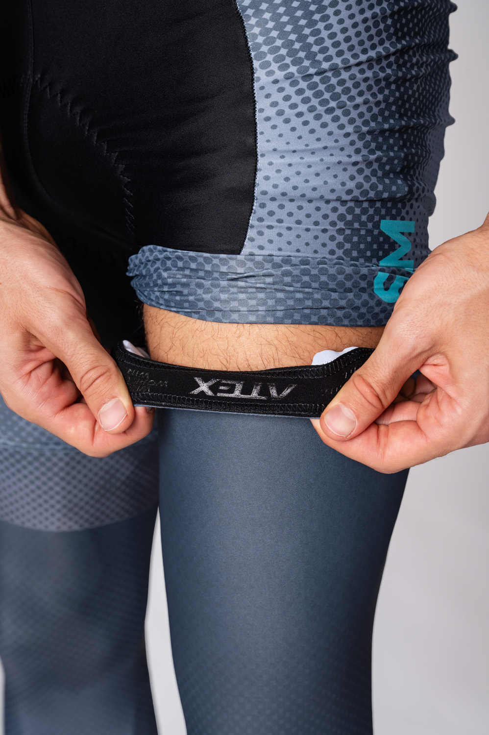 Cyklistické návleky na nohy mají anatomicky tvarovaný střih, který se přizpůsobuje přirozenému pohybu nohy. Horní část je zakončena silikonovou gumou, která zajišťuje, že návleky během jízdy pevně drží na místě a nesklouzávají. Na přání je možné doplnit boční zipy v lýtkové části pro snadnější oblékání a svlékání, stejně tak reflexní prvky pro lepší viditelnost.