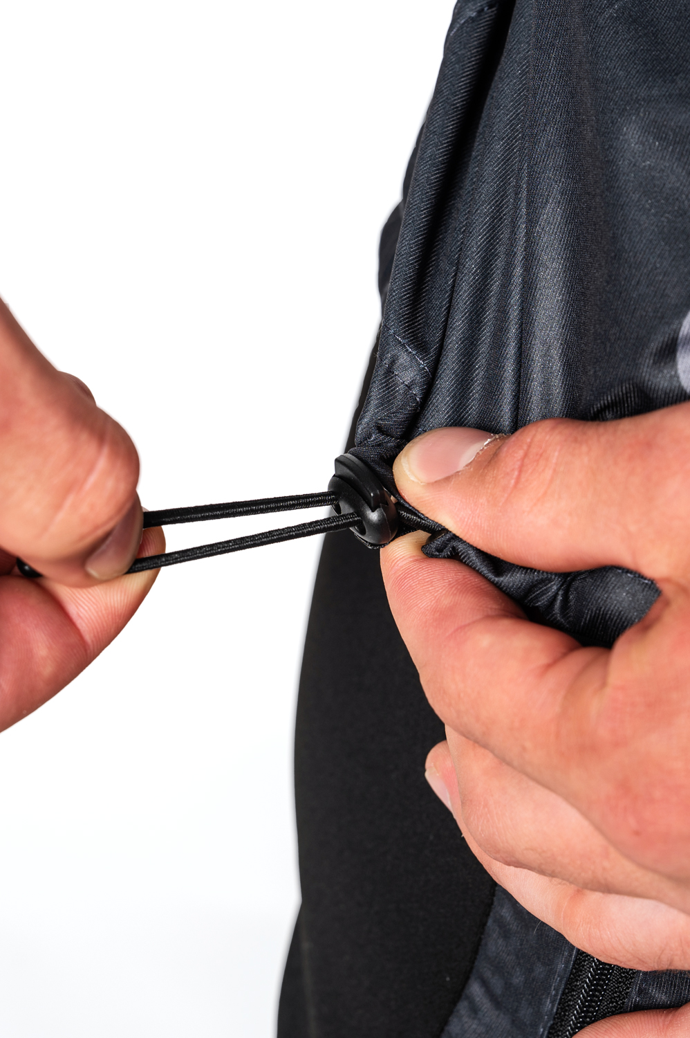 Vyrobena z materiálu WINDPROOF SOFT – extrémně lehkého třívrstvého membránového materiálu s vysokou odolností proti větru a vlhkosti při zachování prodyšnosti. Zadní středová část je z materiálu PAVE – lehkého materiálu s minimální pružností, příjemného na dotek, měkkého a hladkého, jemně lesklého vzhledu.