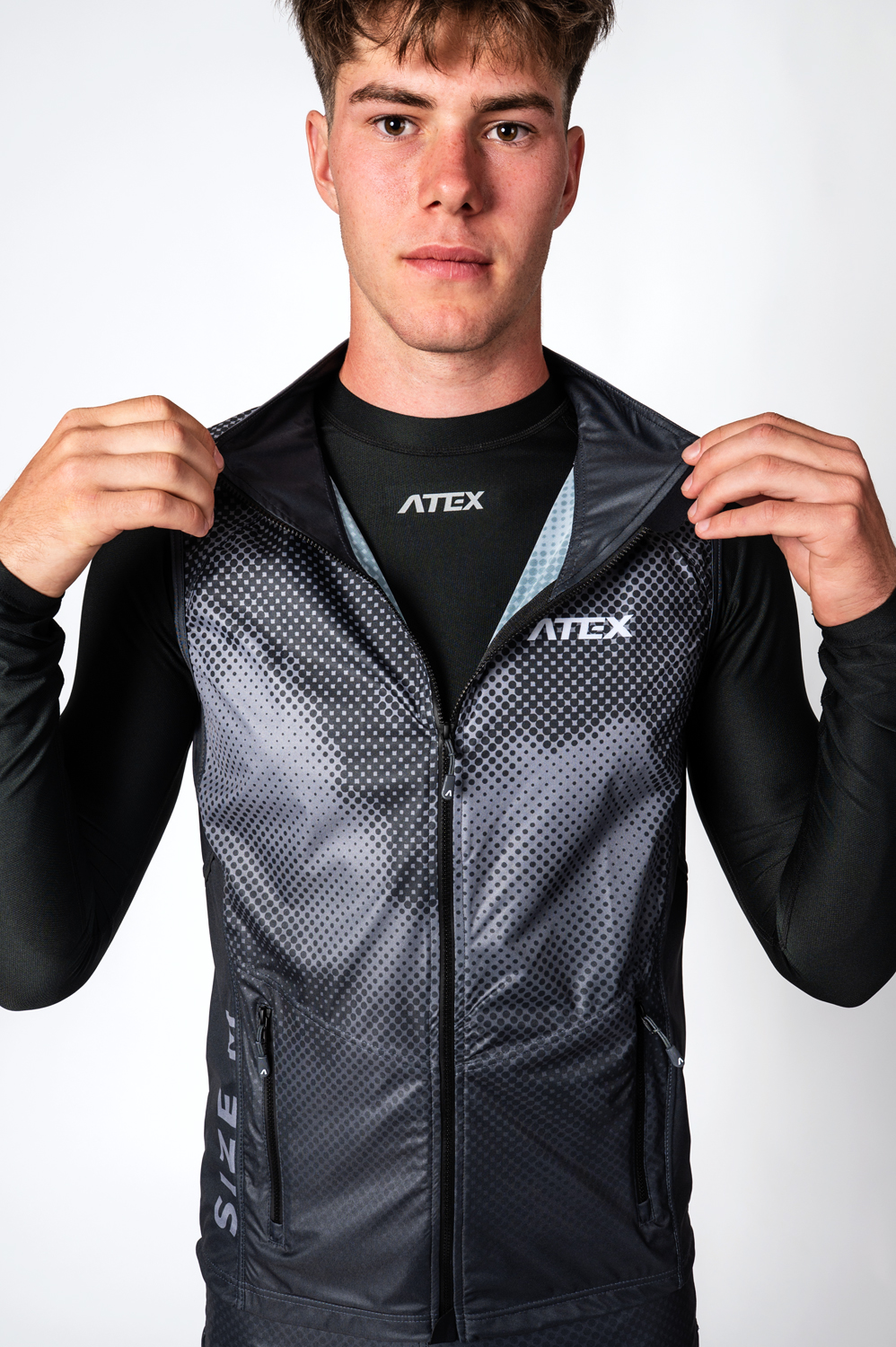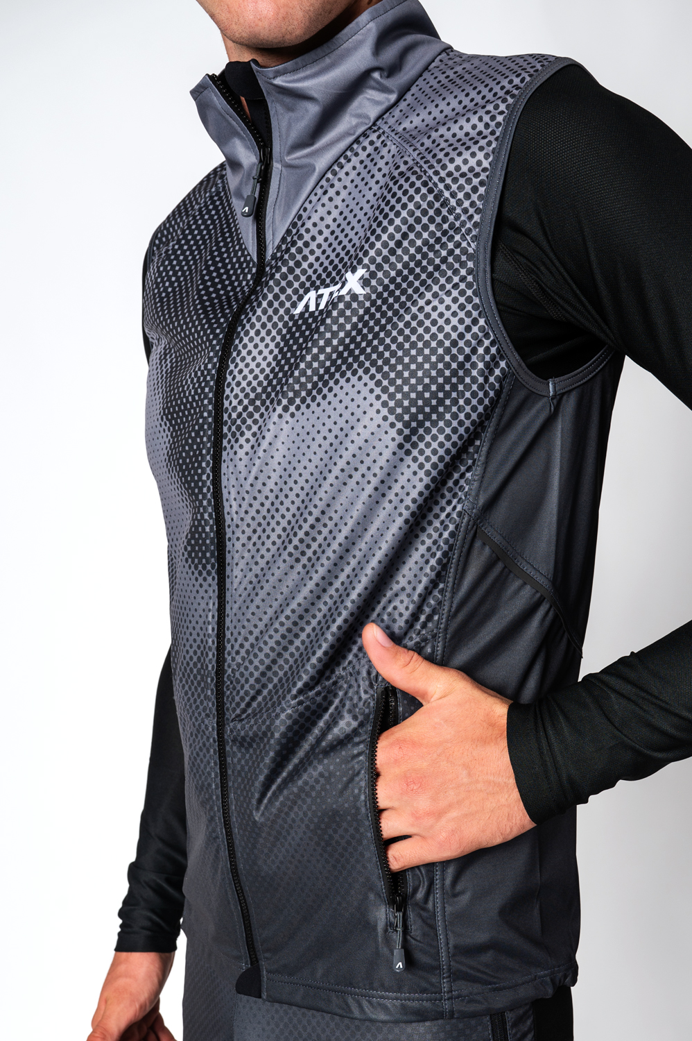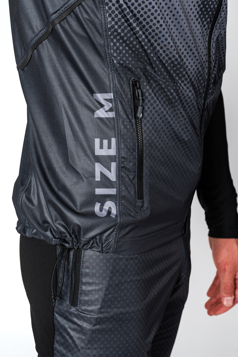 Běžkařská vesta ELITE má polopřiléhavý tvarovaný střih a je složená z více dílů, které zajišťují maximální pohodlí a pružnost během sportovních aktivit. Na předním díle vesty se nachází celopropínací voděodolný zip s krytkami na obou stranách a dvě zipové kapsy pro uložení drobností. Průramky jsou lemované měkkou gumičkou. Spodní okraj vesty je zahnutý a jeho součástí je regulovatelné stahování. Reflexní prvky zvyšují viditelnost a zajišťují bezpečnost během sportovních aktivit.
